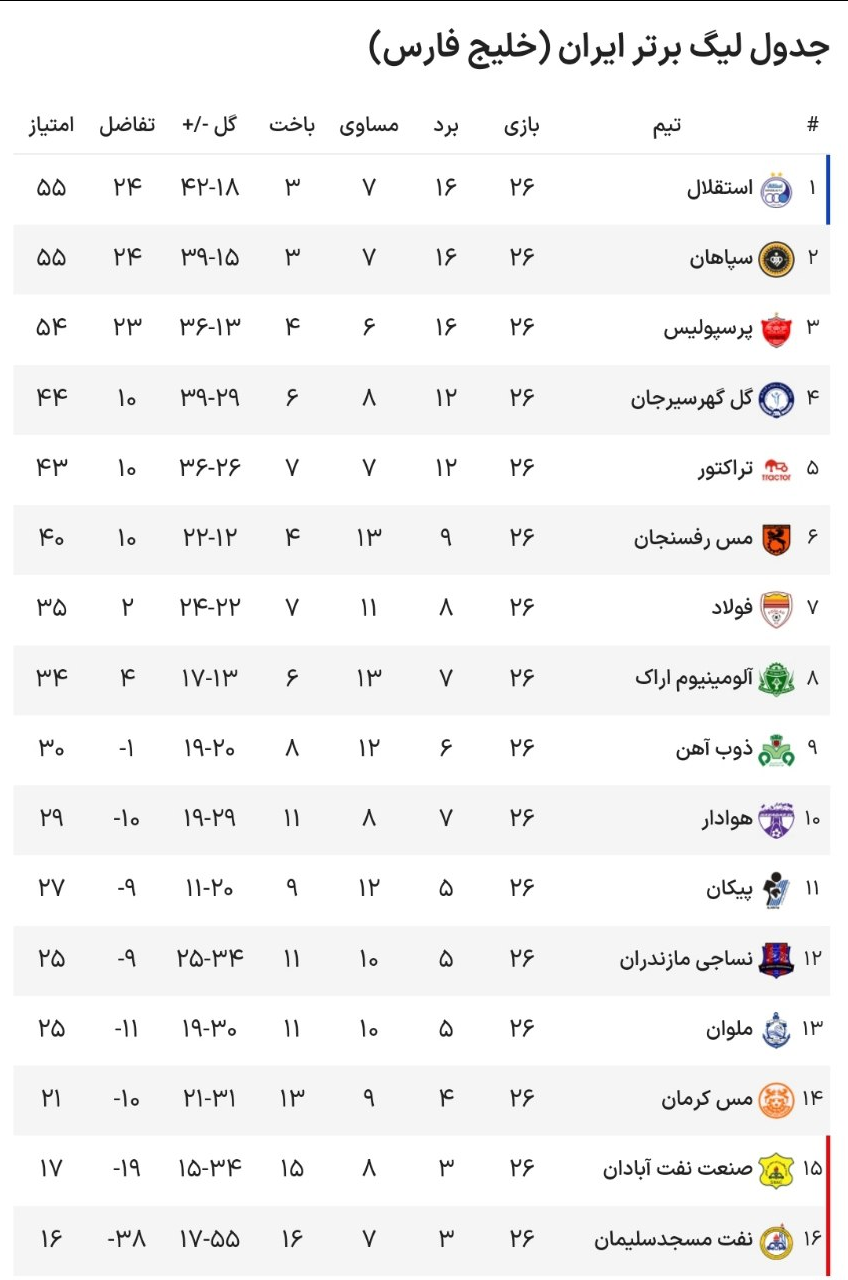 در زیر عکسی از سایت رسمی سپاهان میبینیم که سپاهانی ها نیز طبق قانون تیم خود را در رده دوم قرار دادند؛